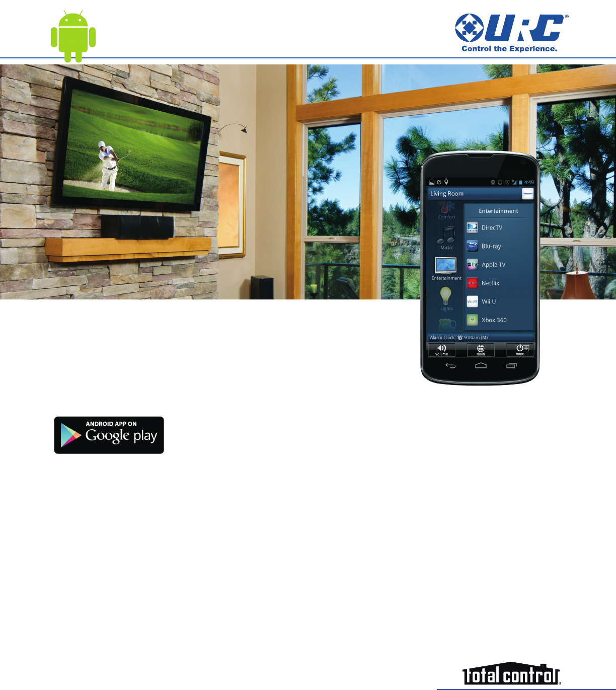 Specications and screen designs are subject to change without notice. Universal Remote Control and Total Control are trademarks of Universal Remote Control, Inc. Android and Google