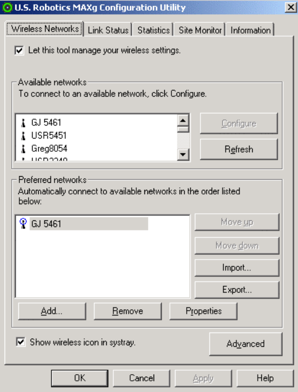 The Configuration Utility can be used to change the settings of the Wireless MAXg USB