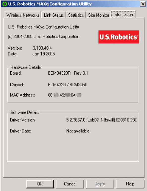 view the information regarding your Wireless MAXg USB Adapter, and perform