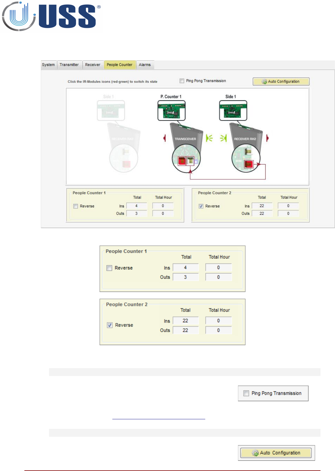Select People Counter Tab to display the configuration of the systems and IR-Modules states.