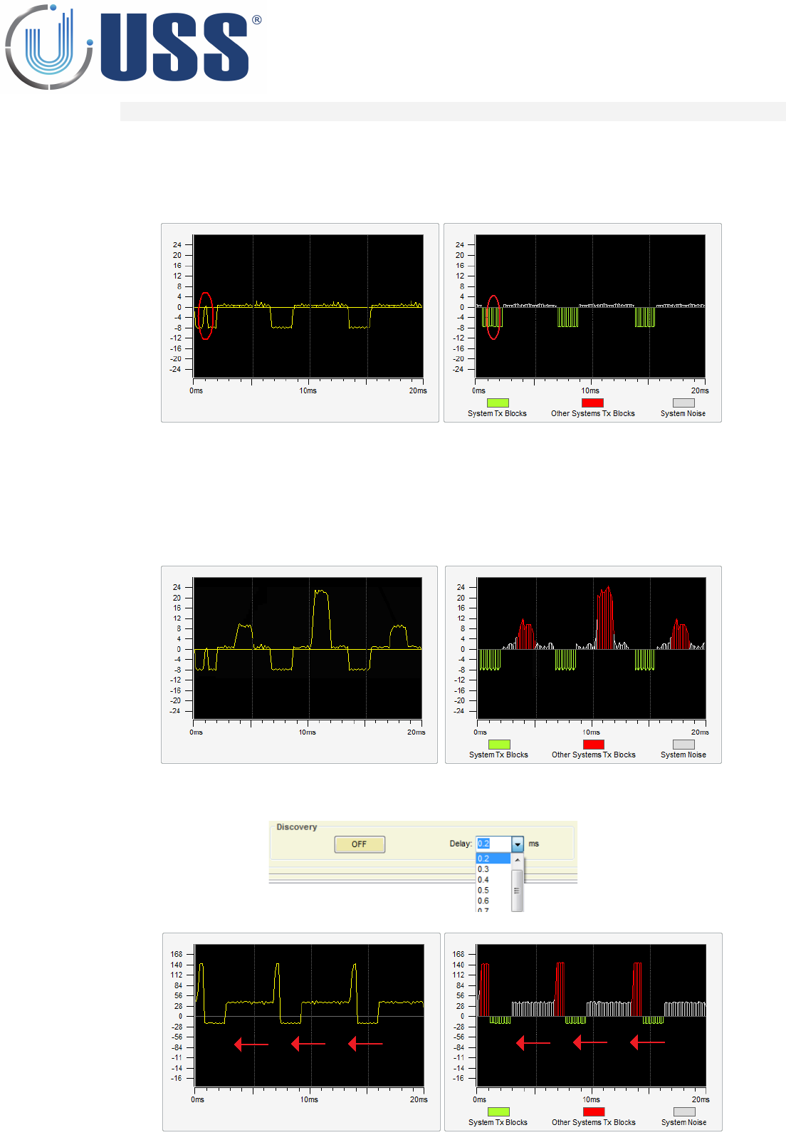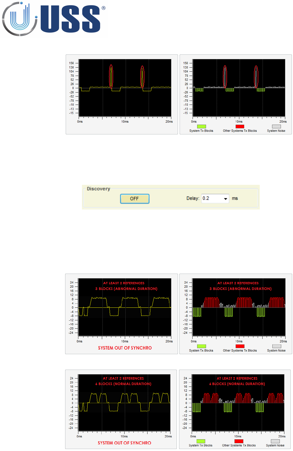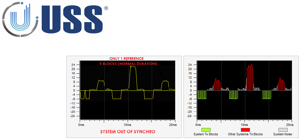 the other system TX blocks. The synchro can be followed and verified visually. The peaks appearing in