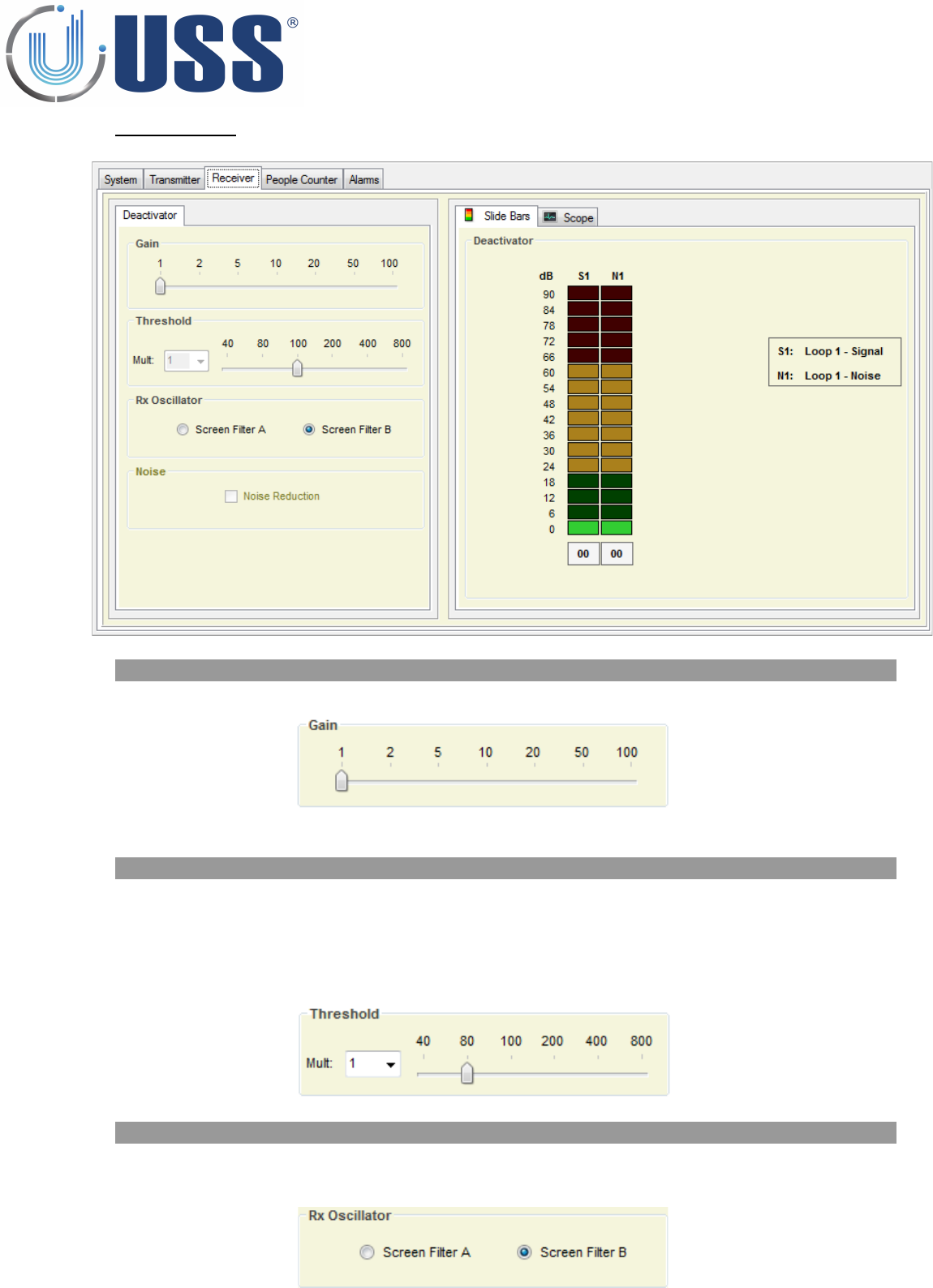 Threshold feature is the signal level at which each receiver will trig an alarm.