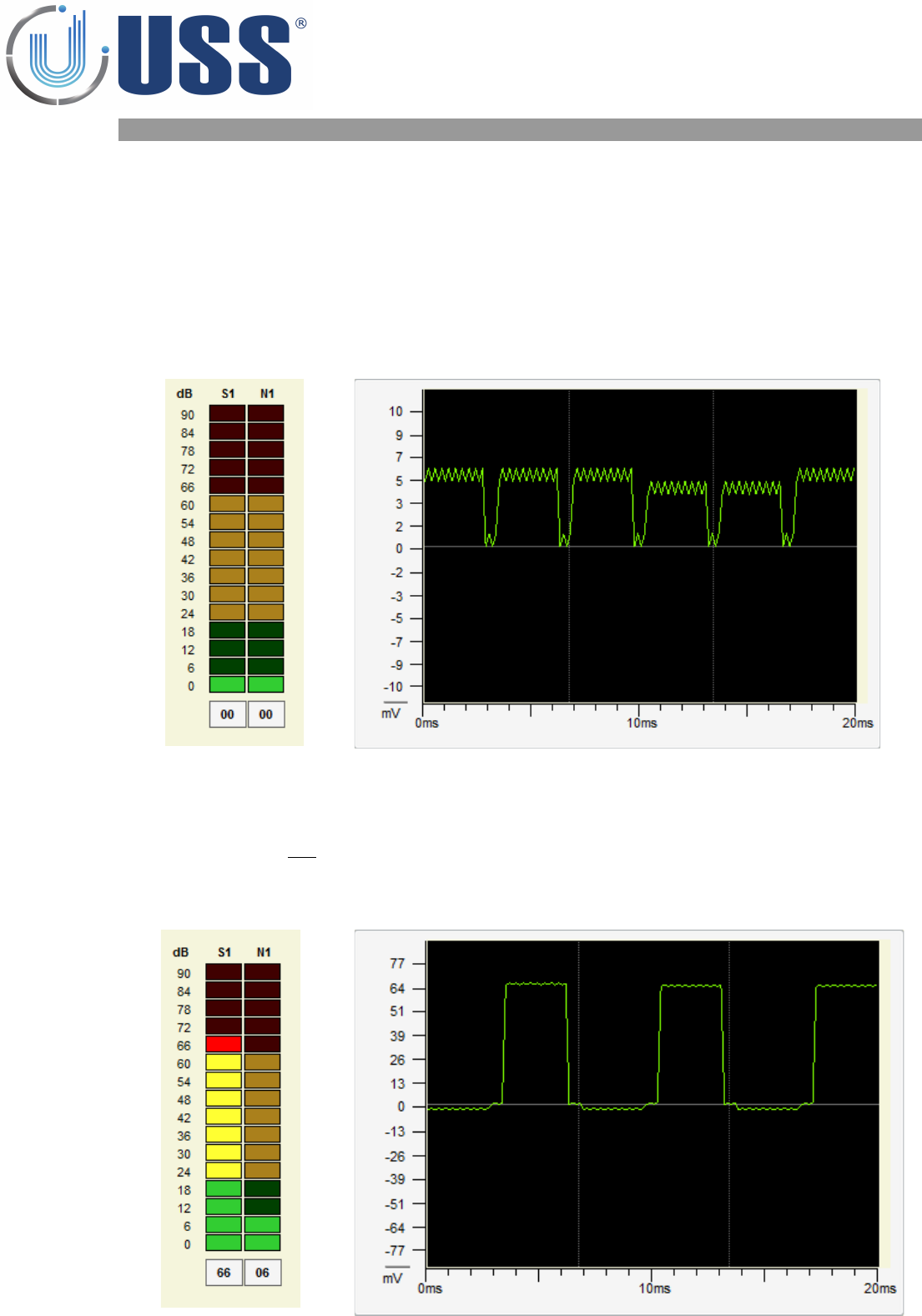 The reception areas shown on the Signal Bars / Digital Scope should look as follows: