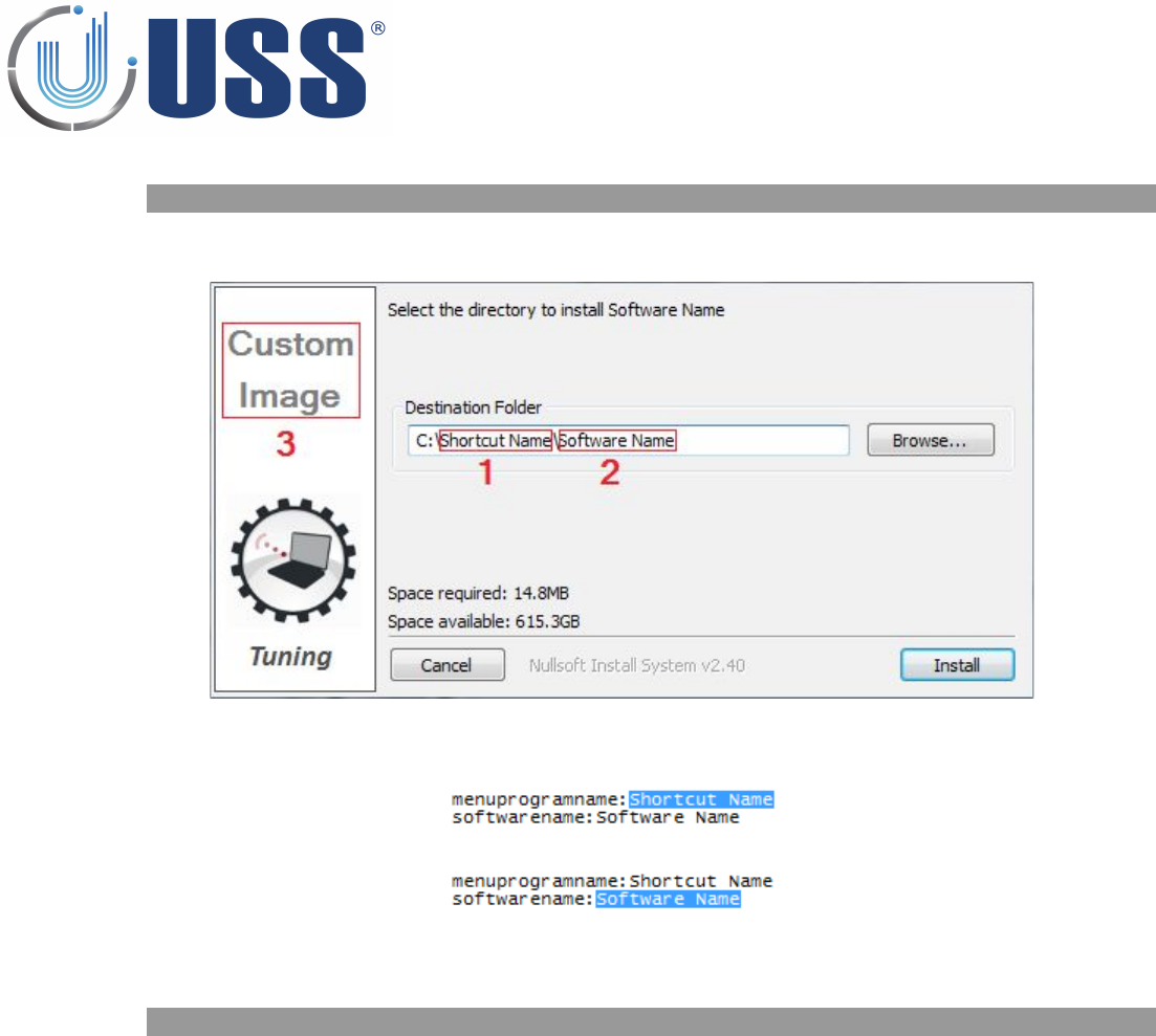 Customize the way installation setup runs including software name, shortcut on the start menu and display