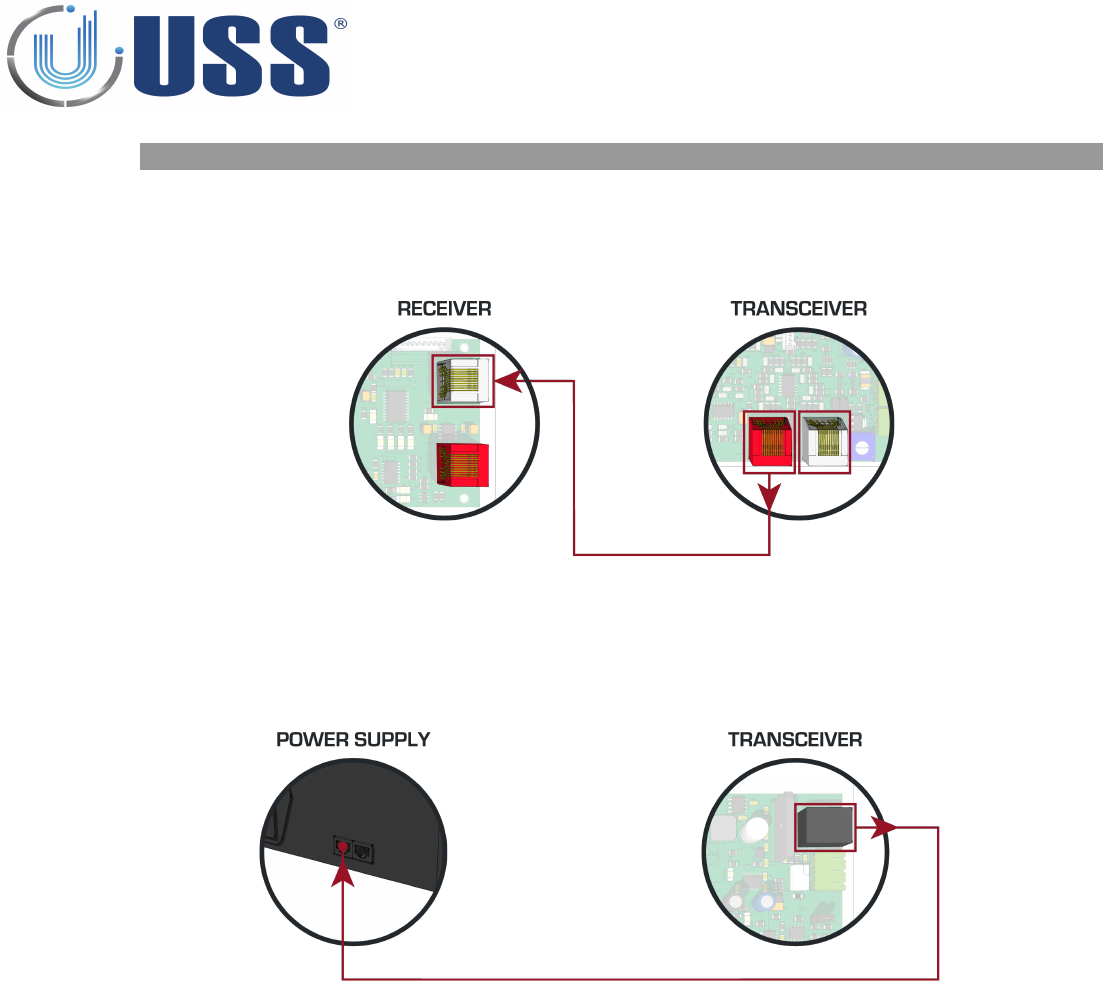 Route the Receiver-Transceiver cable and power supply cables through places where cannot be easily