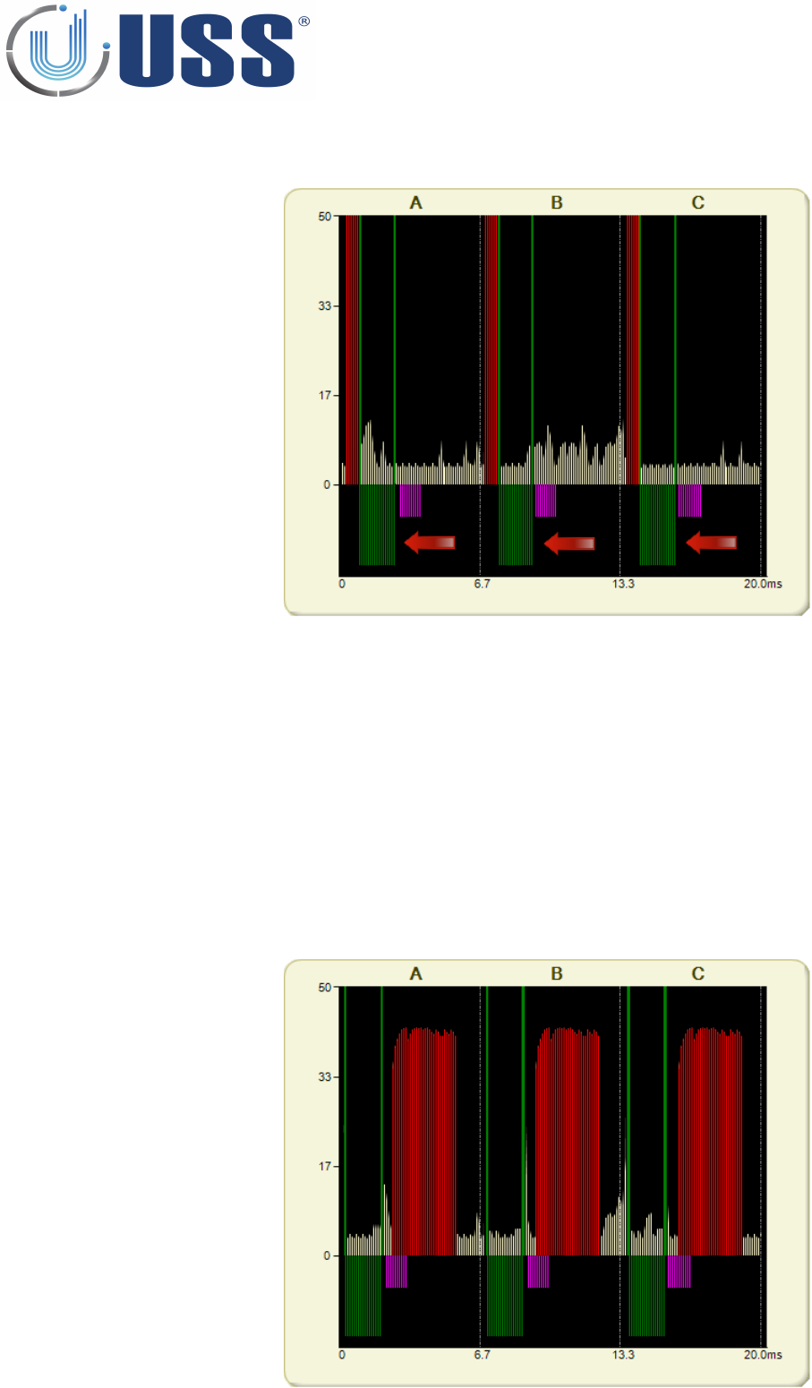 the same as in SITUATION 1 BUT the 2 Bars/Areas reserved for tag signal, show higher values