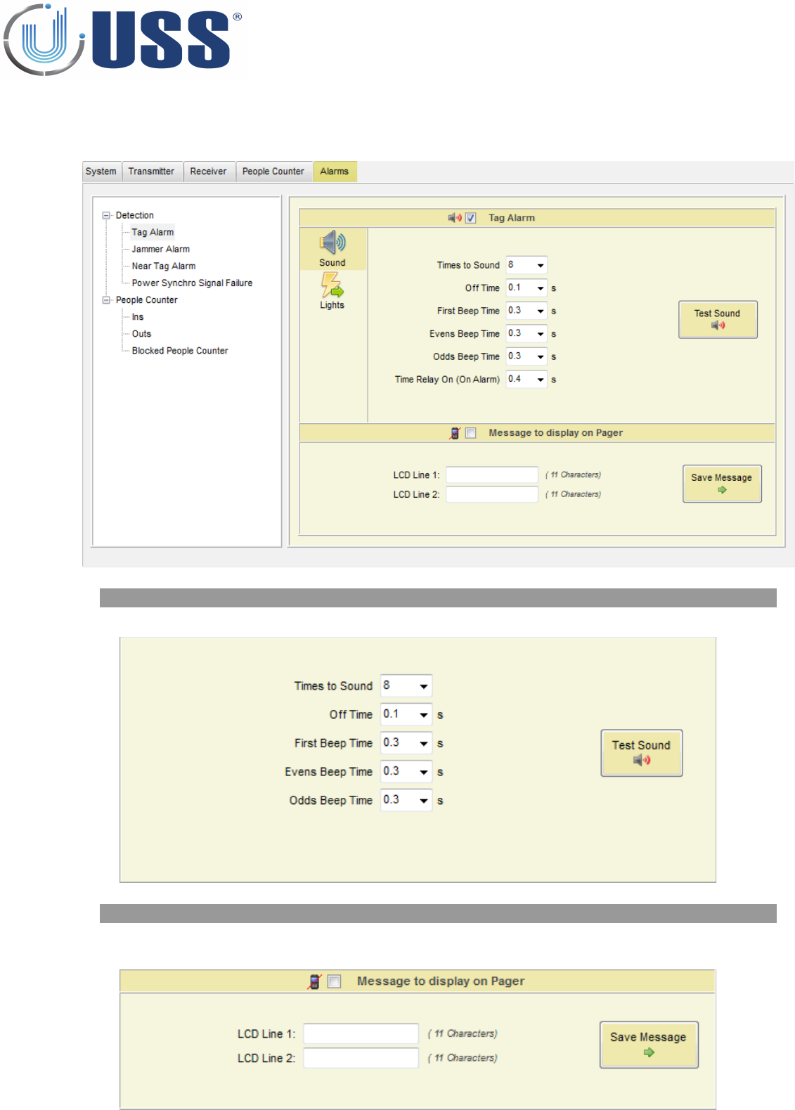 Type the messages to display on Pager in order to receive a message when an alarm event occurs.
