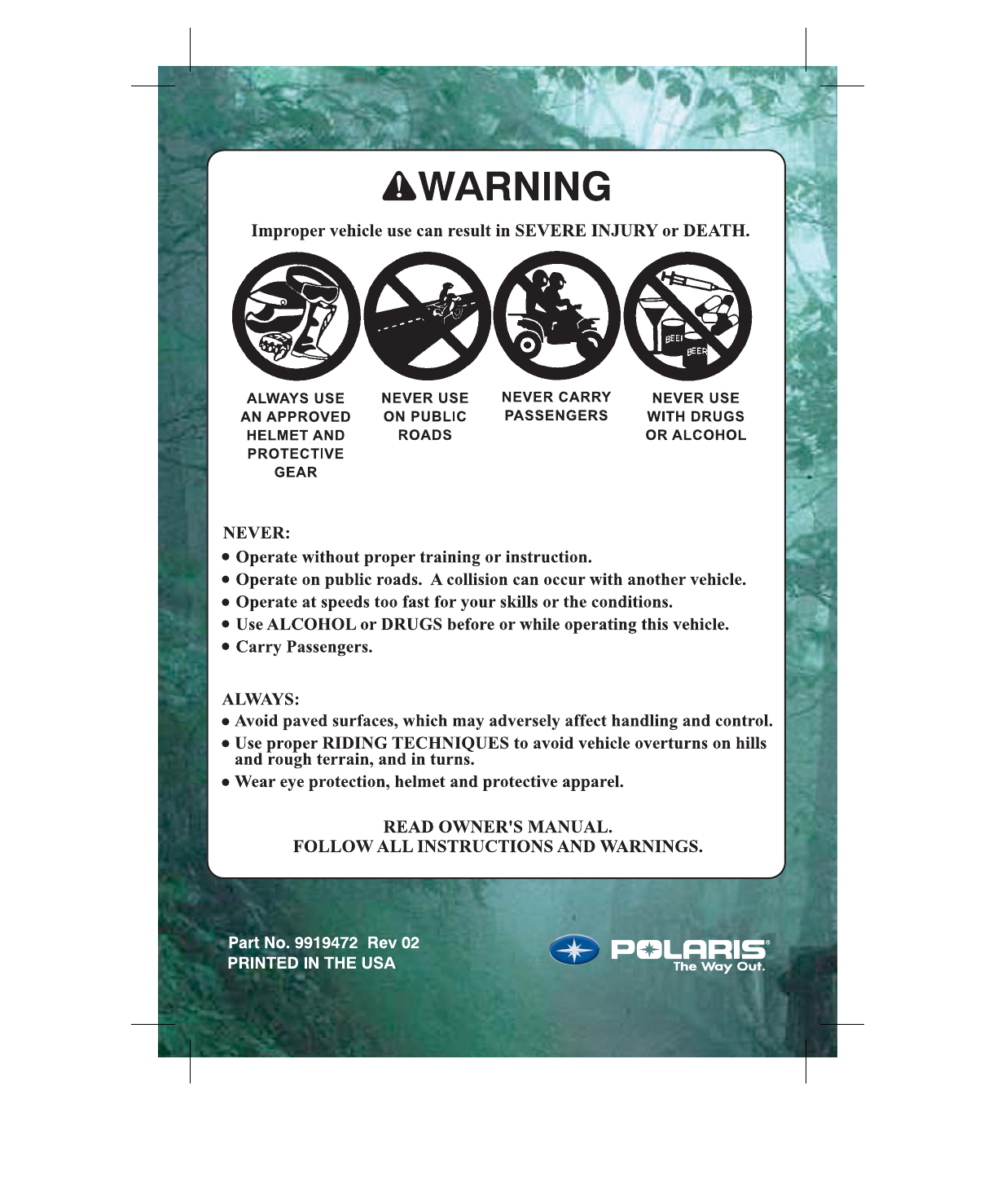 Thank you for purchasing a Polaris vehicle, and welcome to our