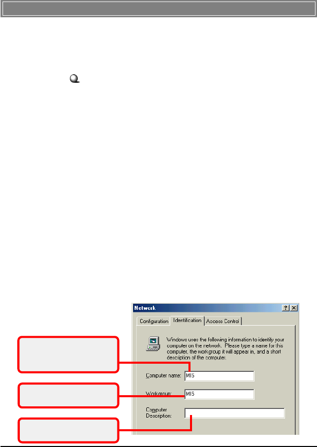 a unique name and common workgroup name, if you had previ-