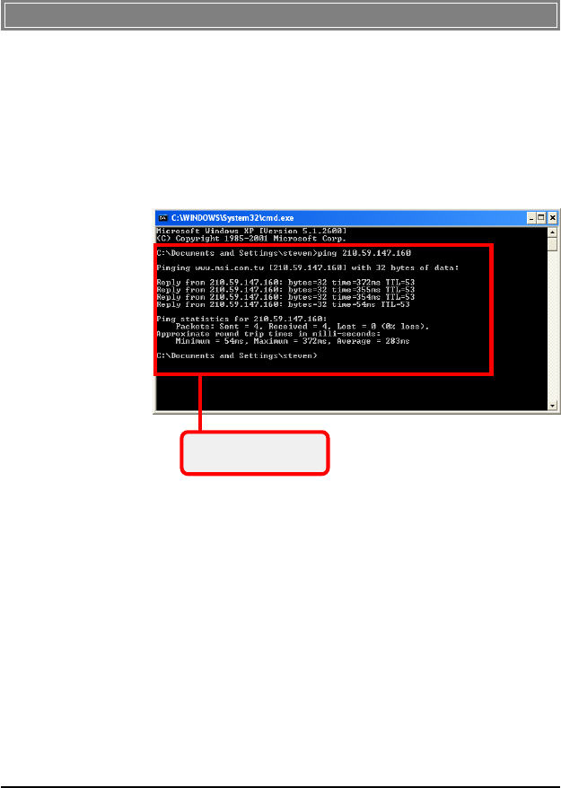 3. A DOS prompt window appears. Type ping 210.