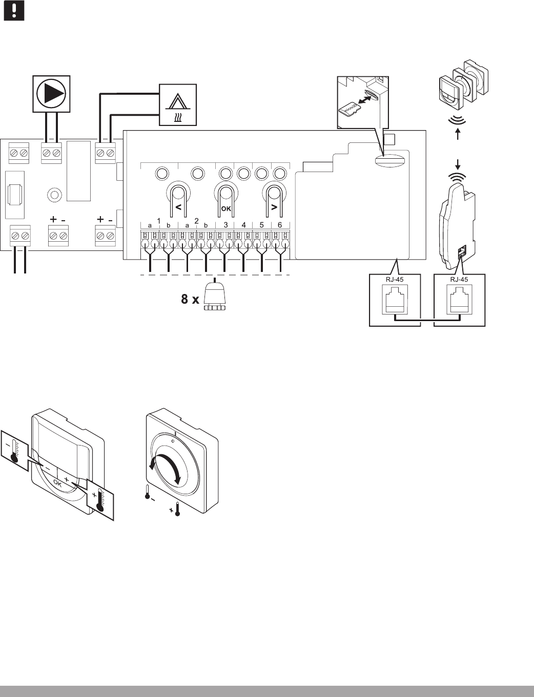 Pump and boiler relay outputs 24 VAC 8 A maximum
