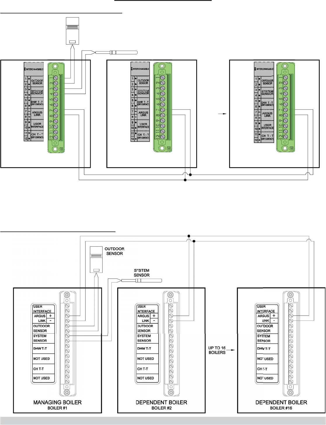 All boilers must be connected in parallel to Argus Link terminals on low voltage terminal block.