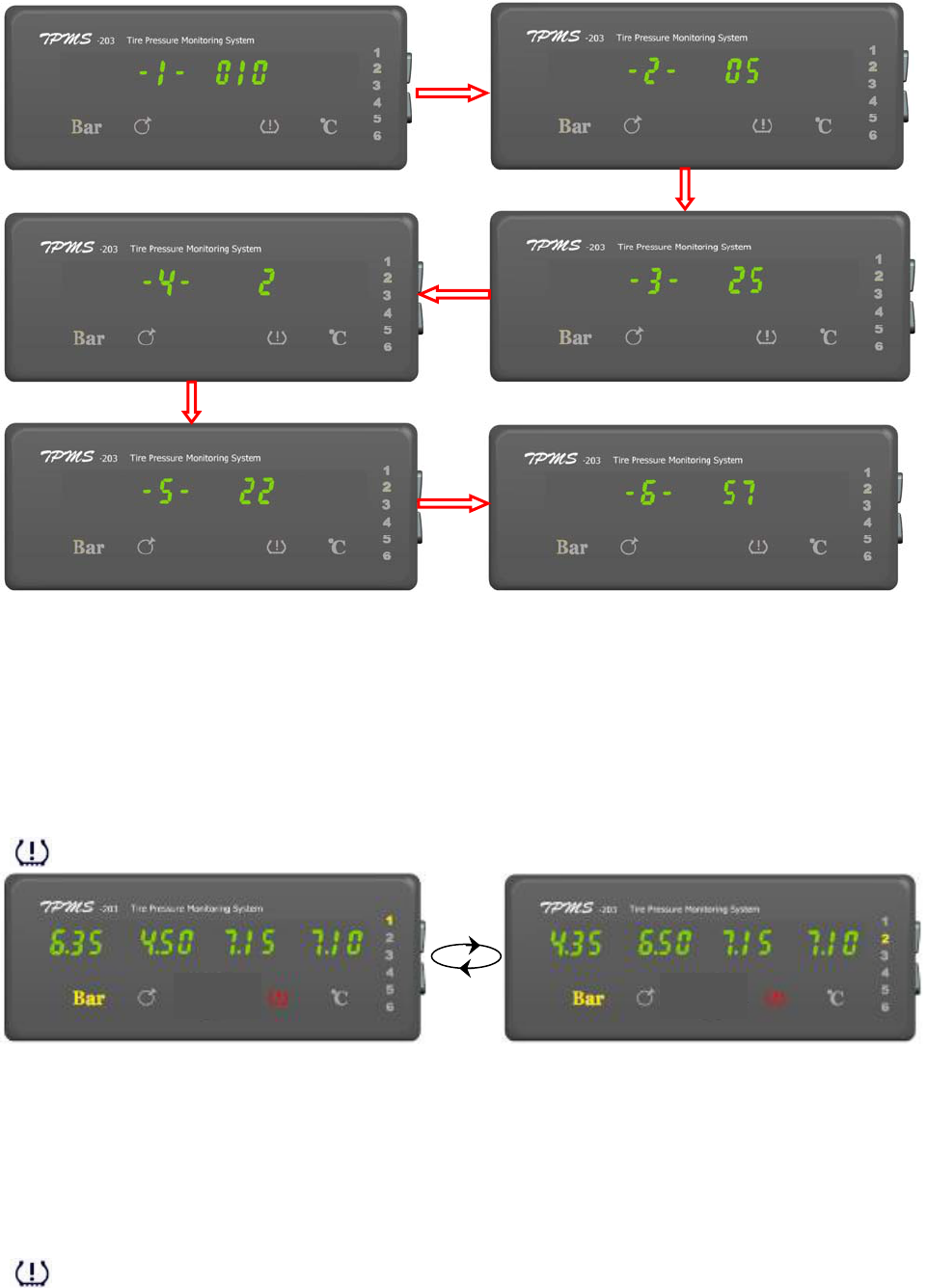1.2.1.5 The display will refresh the tire data after receiving signal. The first pressure value