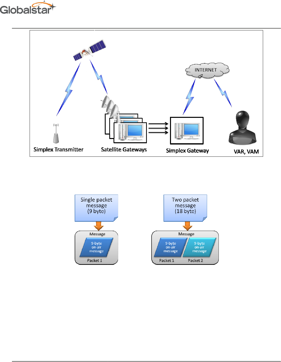 earth orbiting (LEO) satellites using the Globalstar simplex satellite network. The received data is then forwarded to