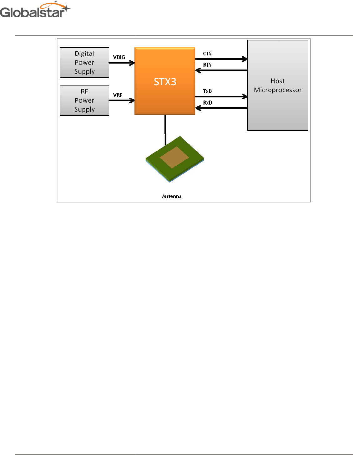 RF connection to the transmit antenna, and communications with a host processor which will control the operation
