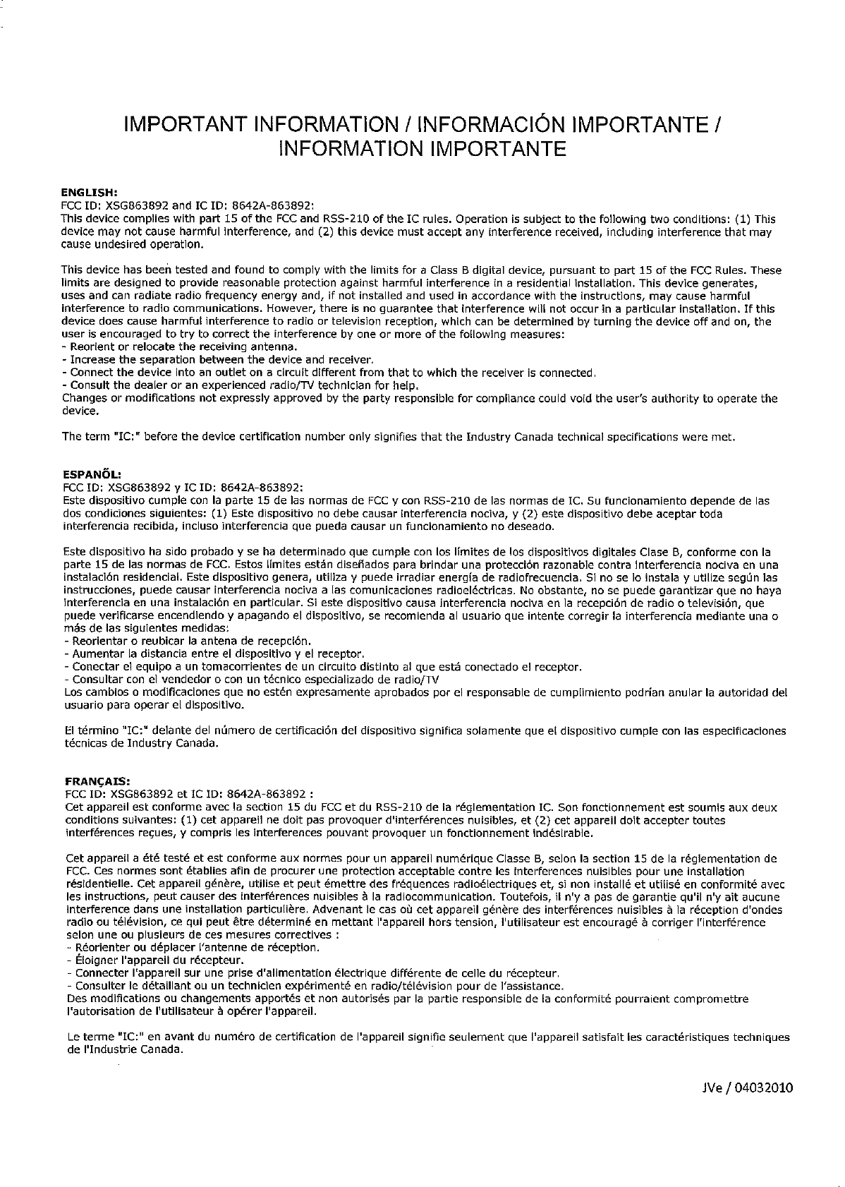 IMPORTANT INFORMATION