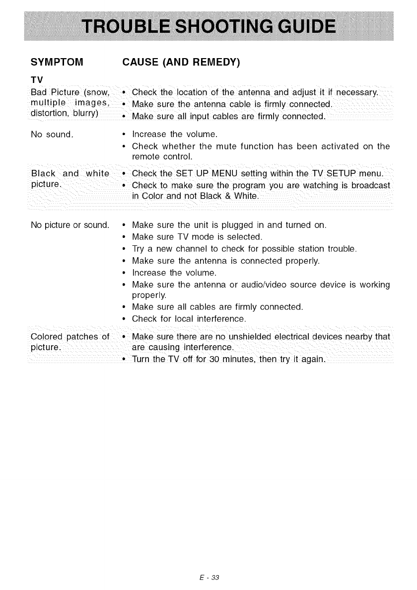 Bad Picture • cheCk the loCation of the antenna and adjust it if necessaiyl