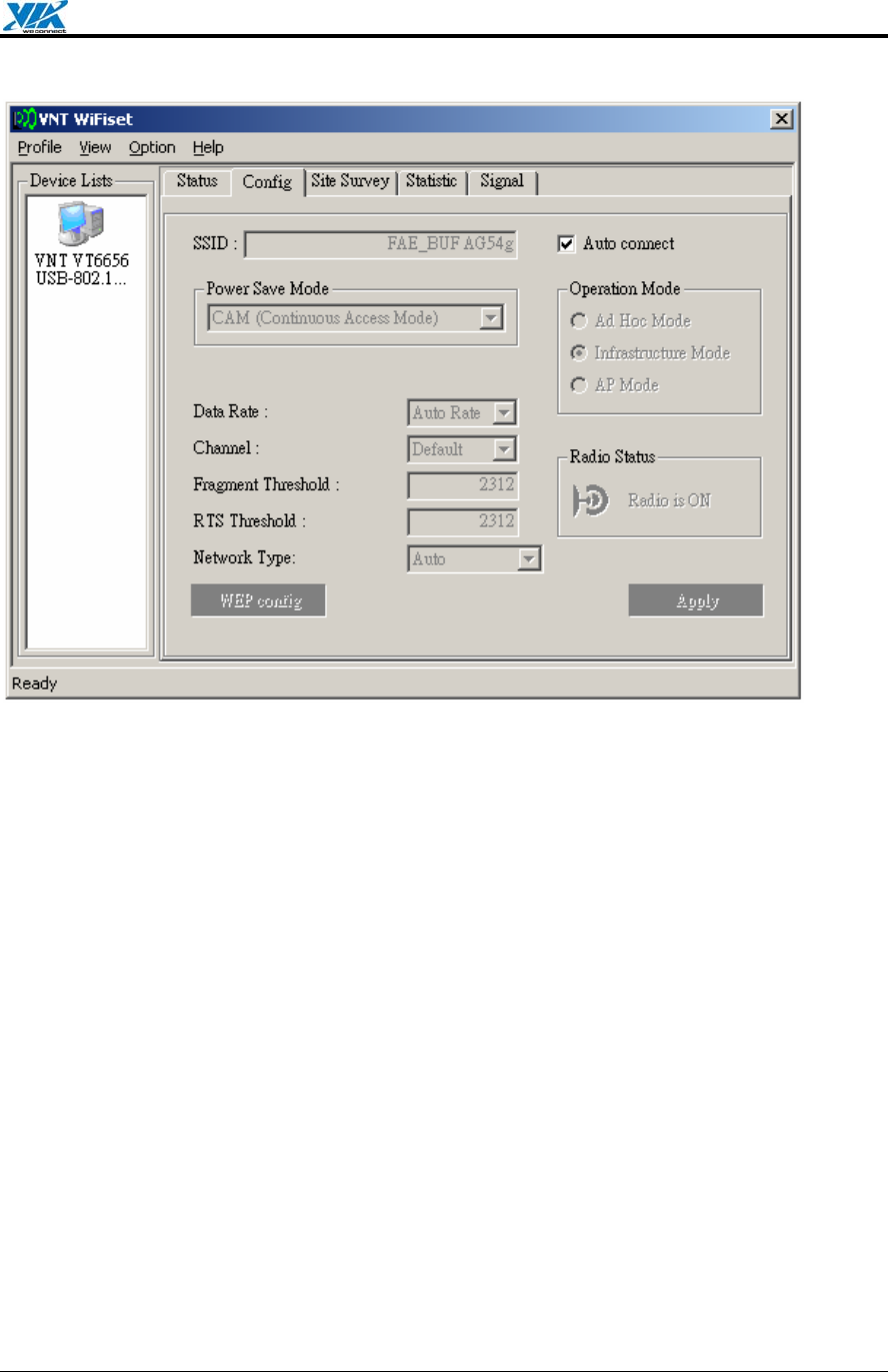 VT6655 supports Windows XP Wireless Zero Configuration service for connecting to a Wi-Fi