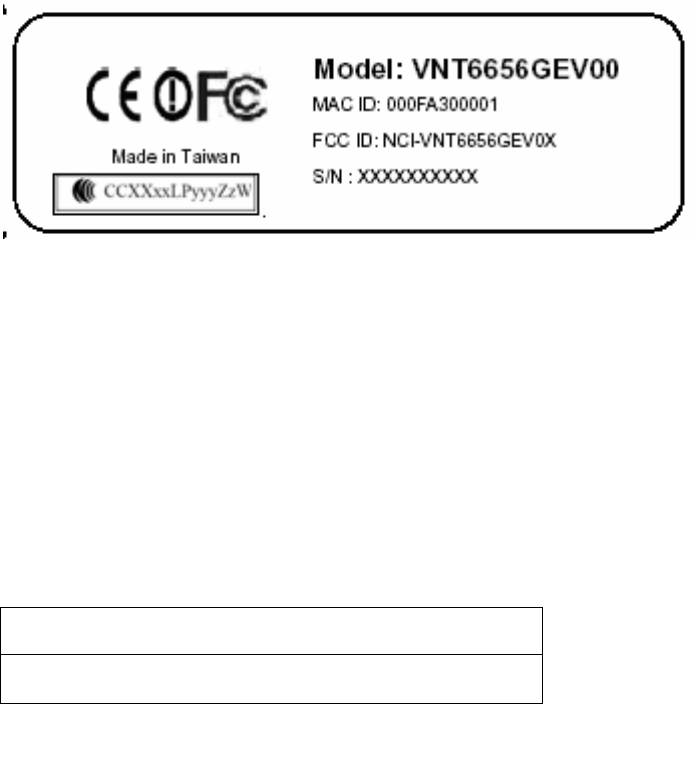 VNT6656GEV00 may only be used to identify WLAN products of VIA Technologies, Inc.