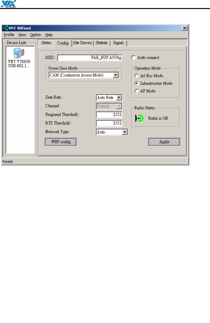 VT6655 supports Windows XP Wireless Zero Configuration service for connecting to a Wi-Fi