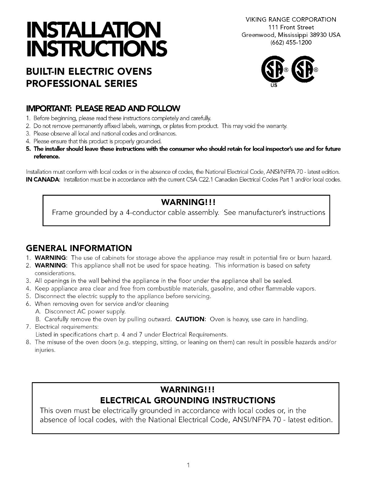 For more product information, call 1-888-VIKING1 (845-4641), or visit the Viking Web site at