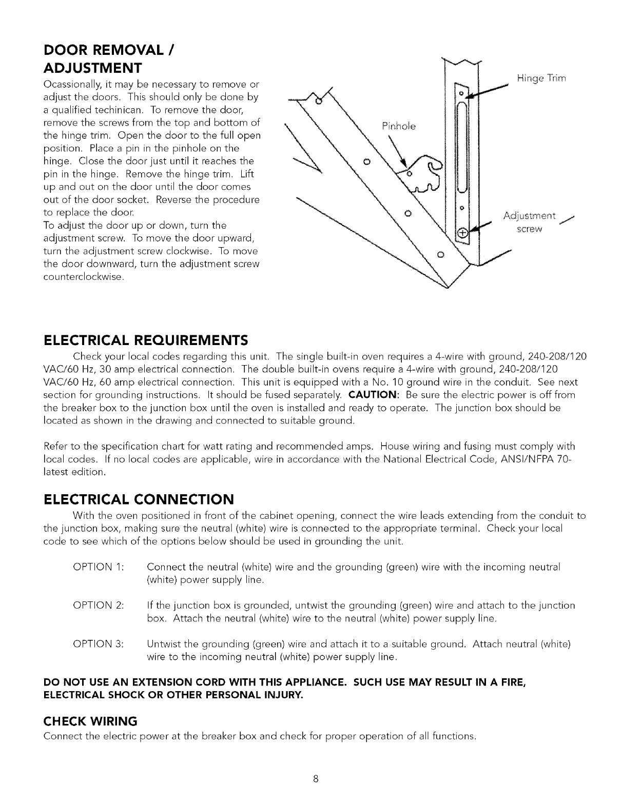 Installationmust conform with local codes or inthe absence of codes, the National ElectricalCode, ANSI/NFPA 70- latest edition.
