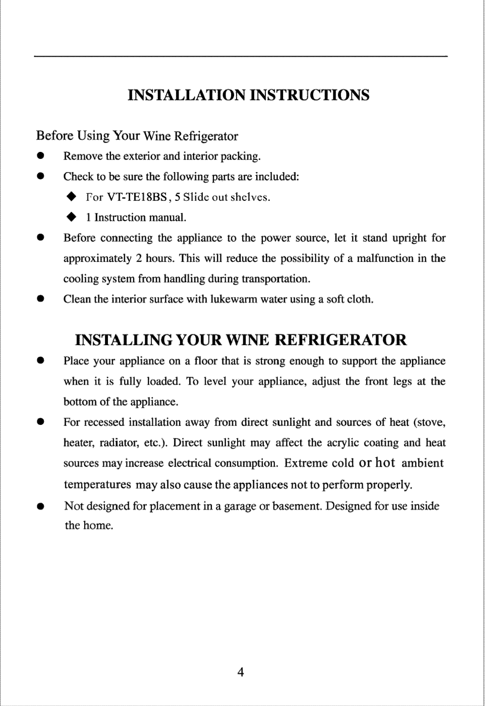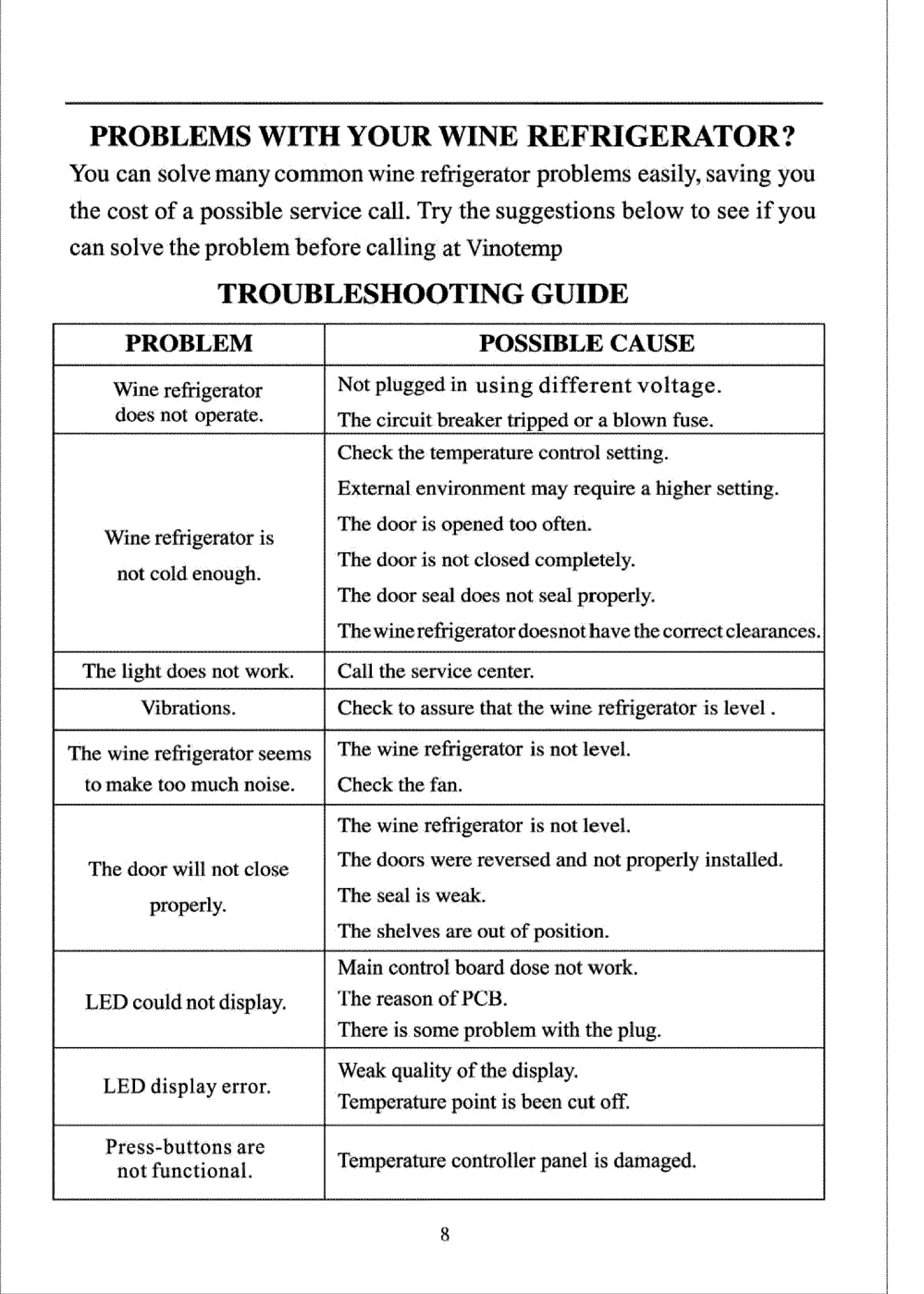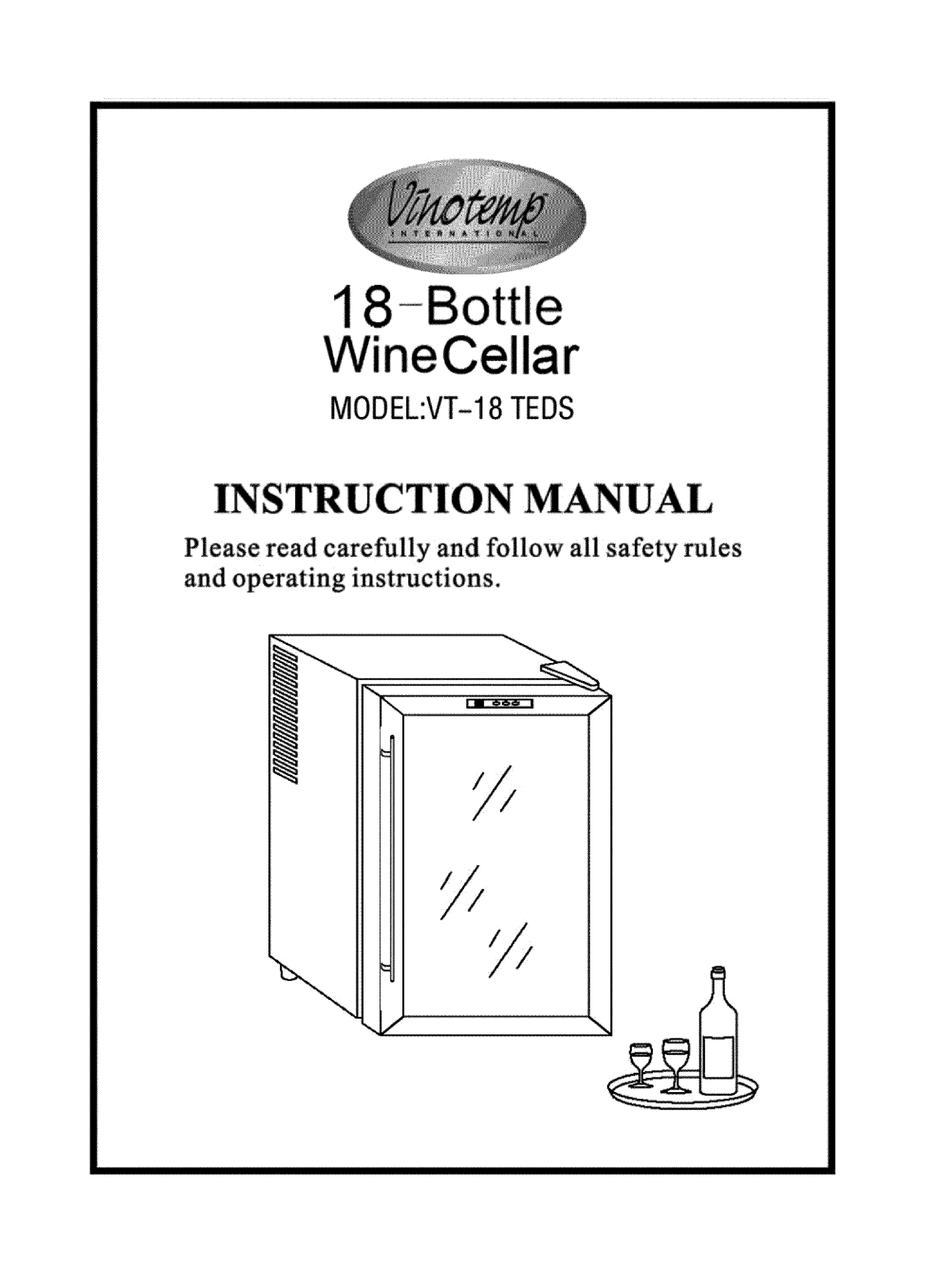 User Manual: VINOTEMP VINOTEMP Wine Cooler Manual VINOTEMP Wine Cooler Owner's Manual, VINOTEMP Wine Cooler installation guides