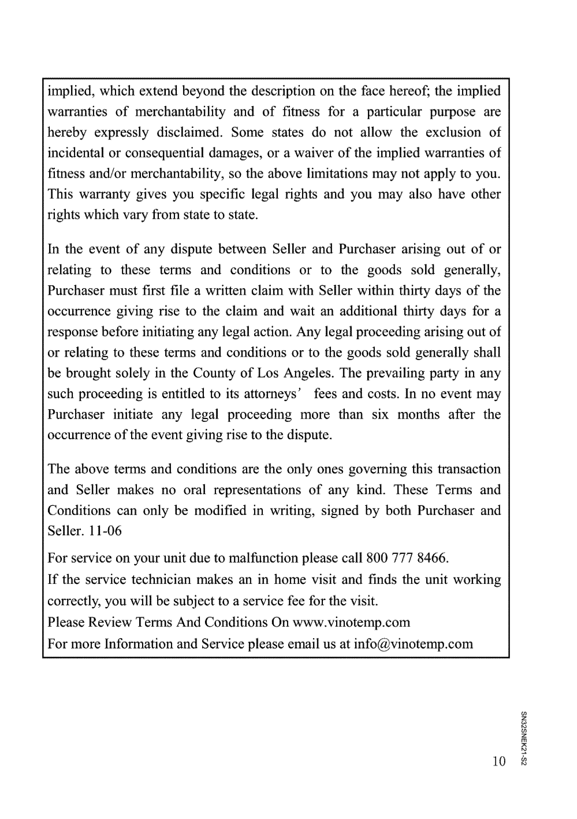 VINOTEMP Wine Cooler Manual L0801840