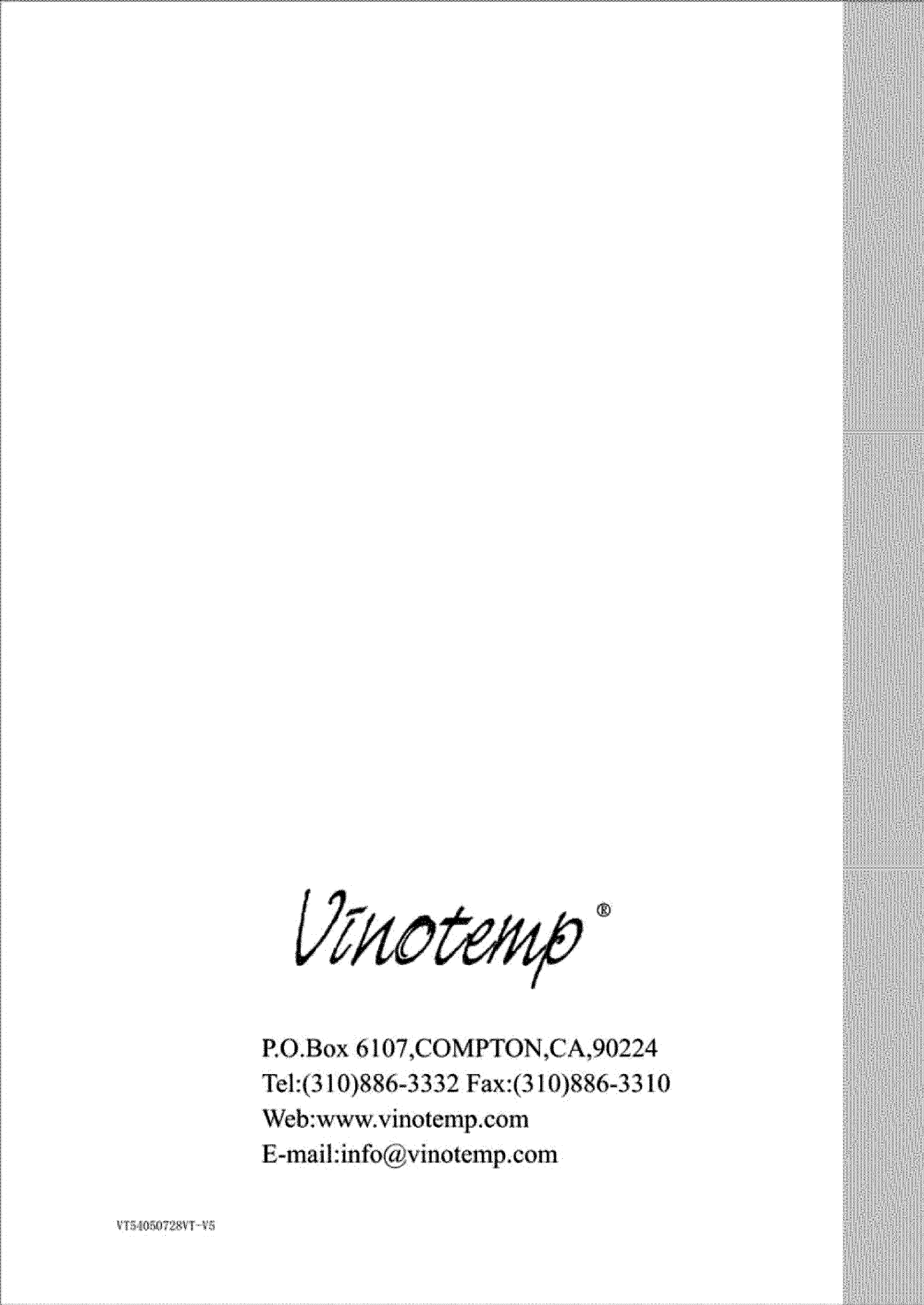 VINOTEMP Wine Cooler Manual L0801888