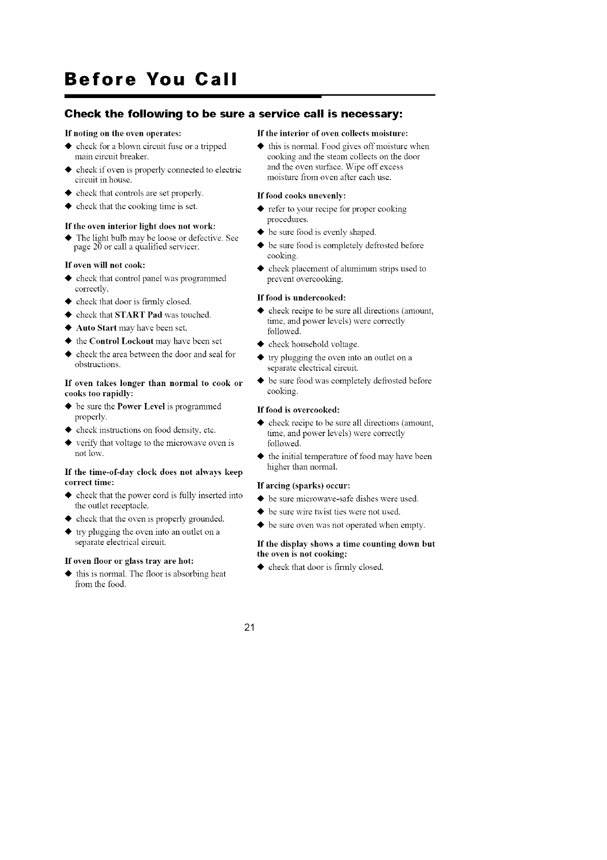 For Service or Assistance please call