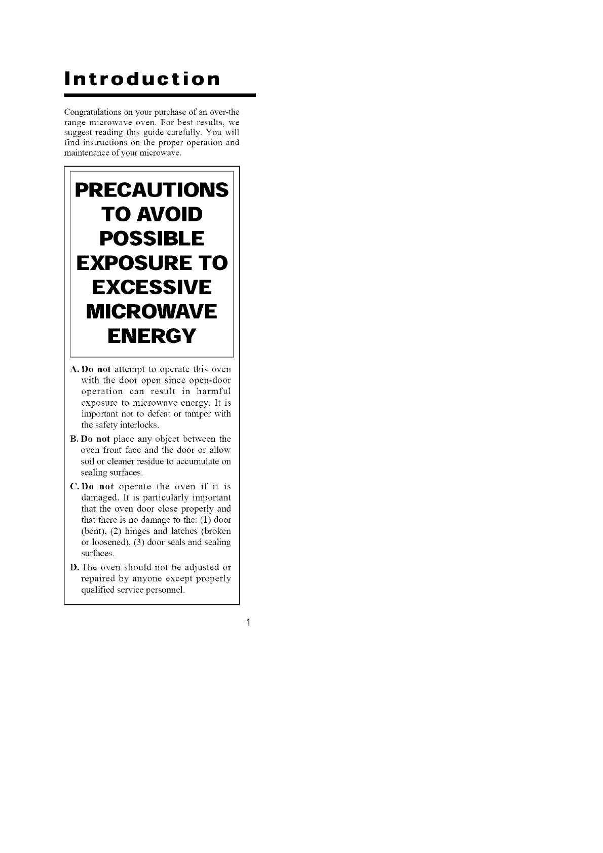 A. Do not attempt to operate this oven