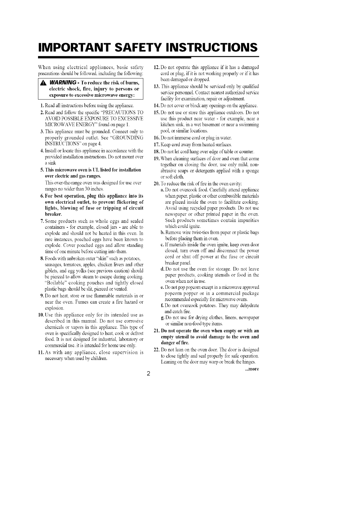 IMPORTANT SAFETY INSTRUCTIONS