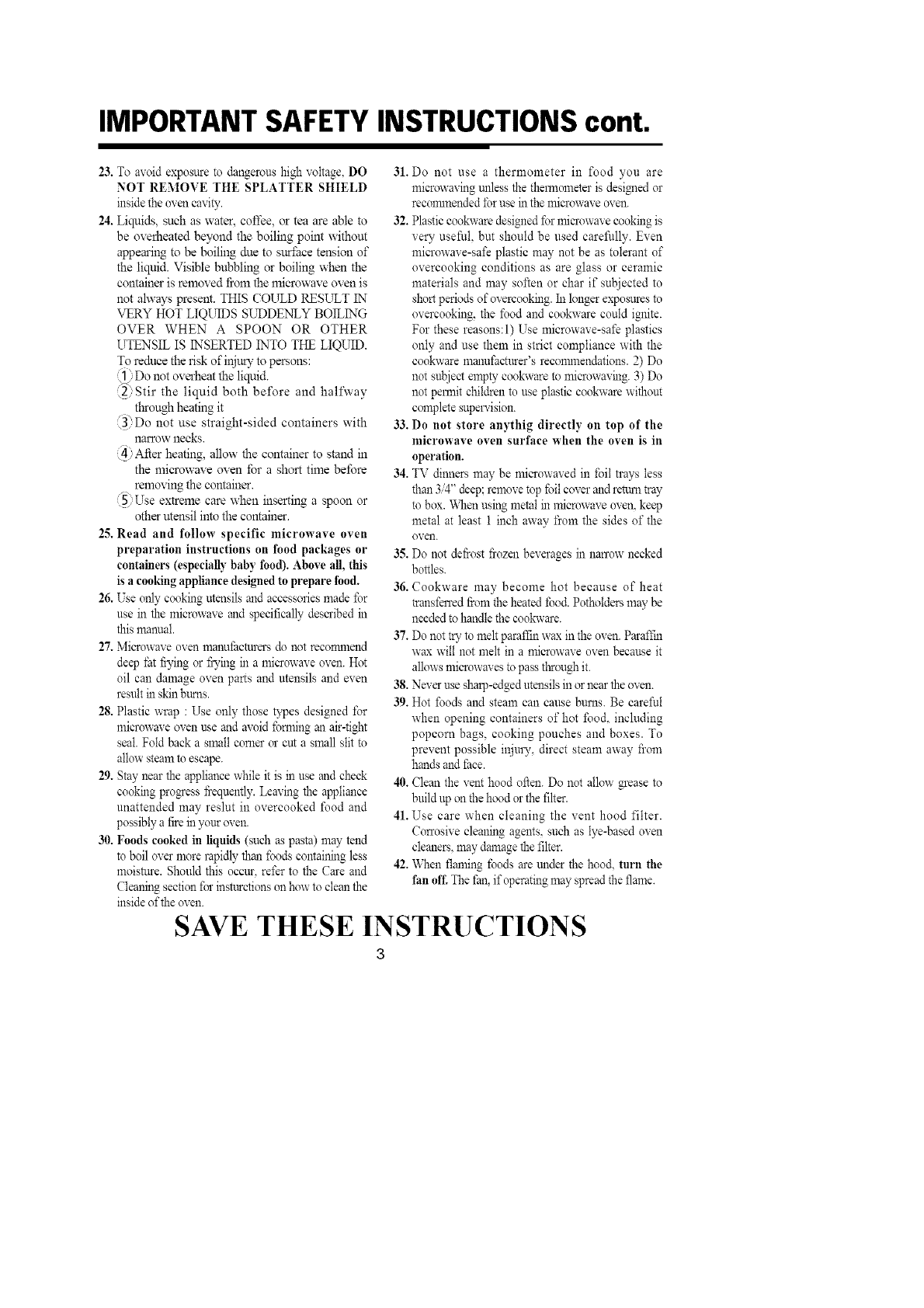 IMPORTANT SAFETY INSTRUCTION