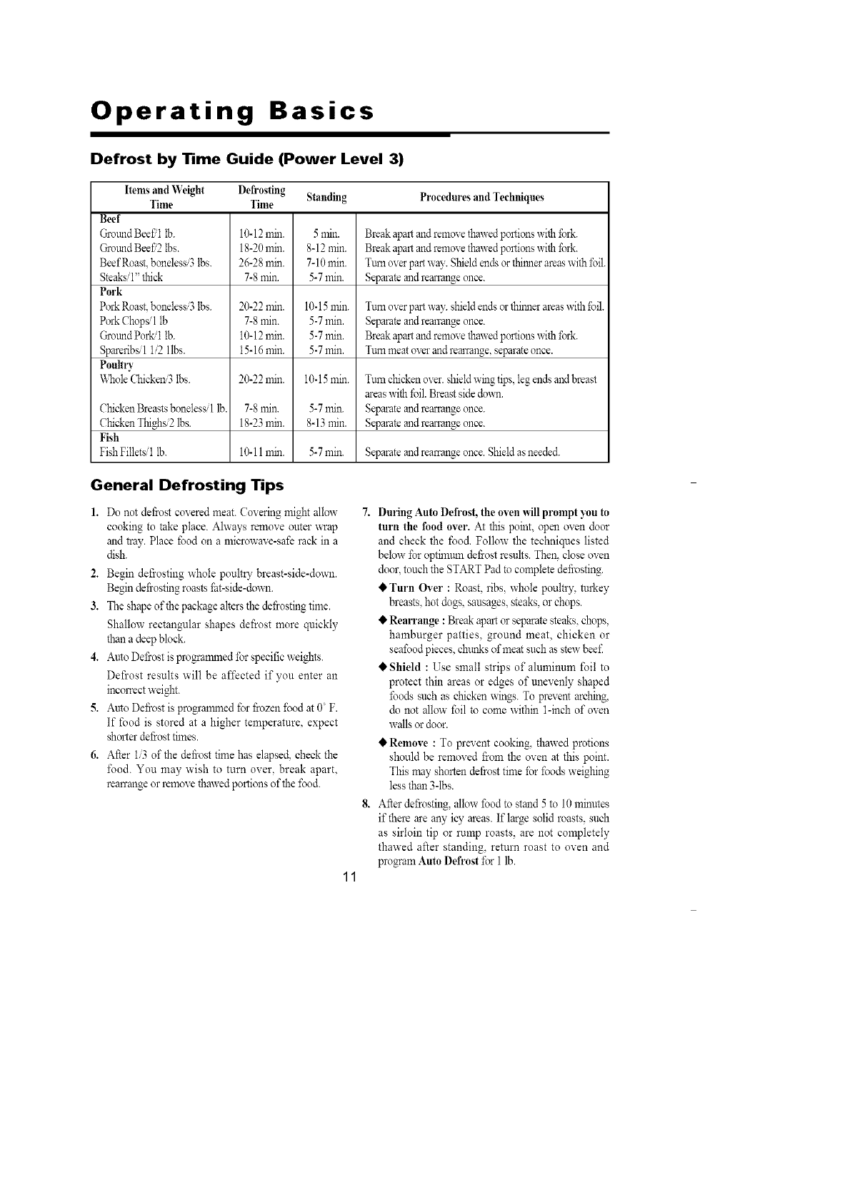 • be sure food is completely defrosted before
