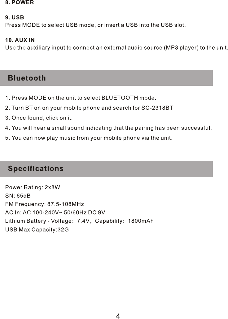 VISTAR ELECTRIC VISTAR-0002 Bluetooth Speaker User Manual E0511D VT 908 SUPERSONIC SC 2318BT IB