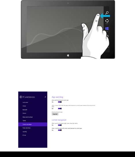 display to turn off the tablet. 2. Swipe in from the right edge of