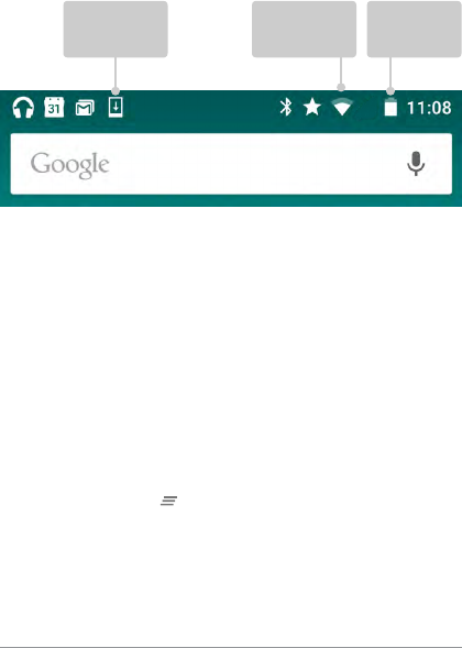 When a notication arrives, its icon appears at the top of the