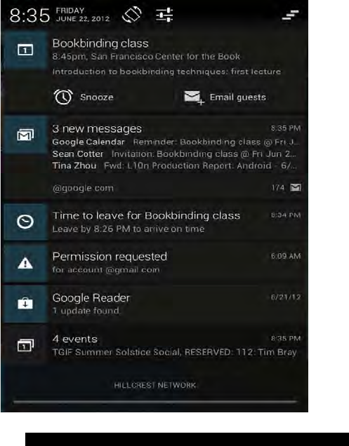 touching icons within the notification. For example, Calendar no-