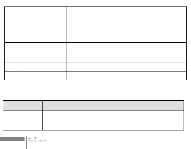 Emergency Alarm: the radio transmits non-speech signal to trigger the alarm sent from other radios.