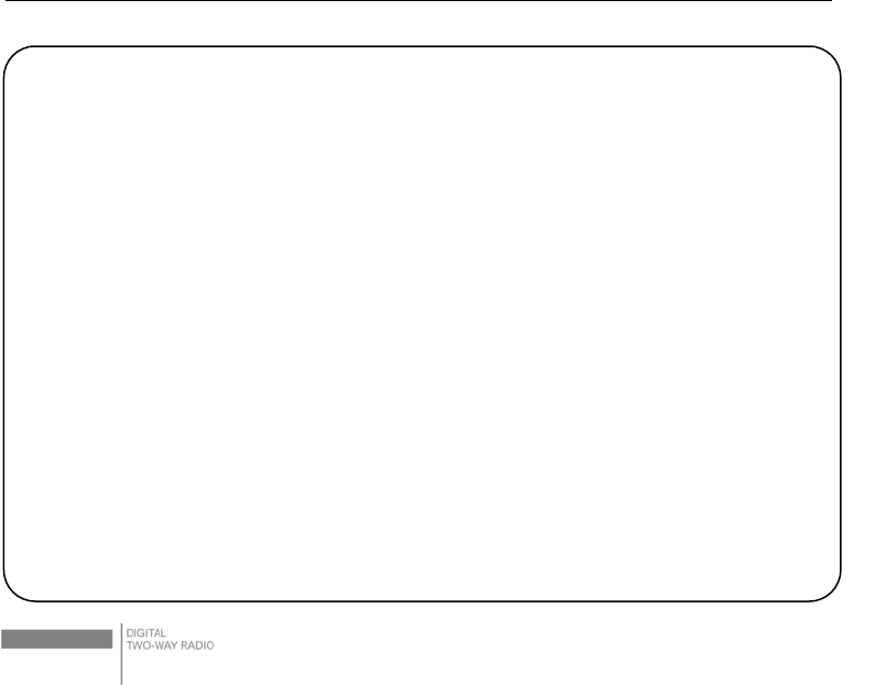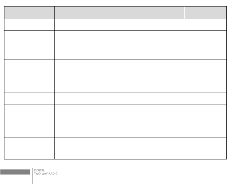 duration set by dealer, the radio will stop transmitting and sound alarm. For stopping alarm, release PTT button.
