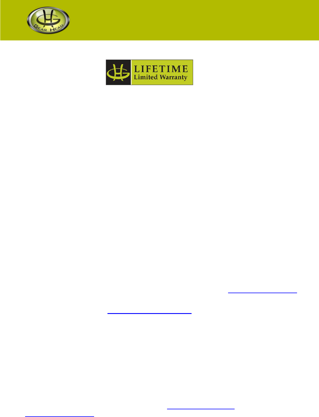 workmanship for the reasonable lifetime of the product. If the product is defective, Gear Head,