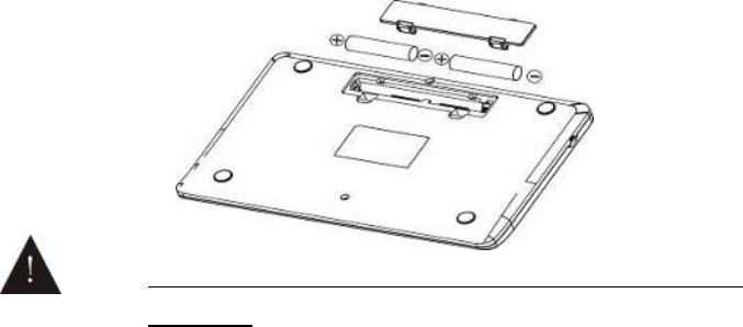 Positive (+) and Negative (-) ends of each battery match the polarity