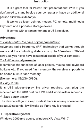 Vson Technology Co.,Ltd. Wireless Presenter V820BK 515BK User s Manual 110215