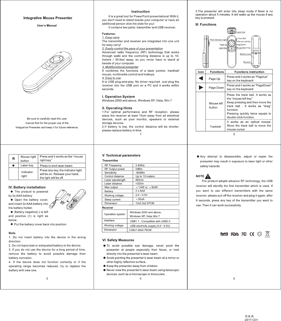 Vson Technology Co.,Ltd. Wireless Presenter Users Manual