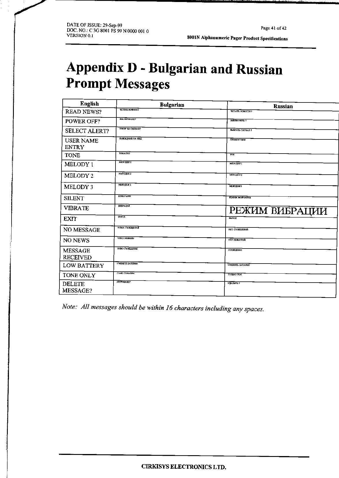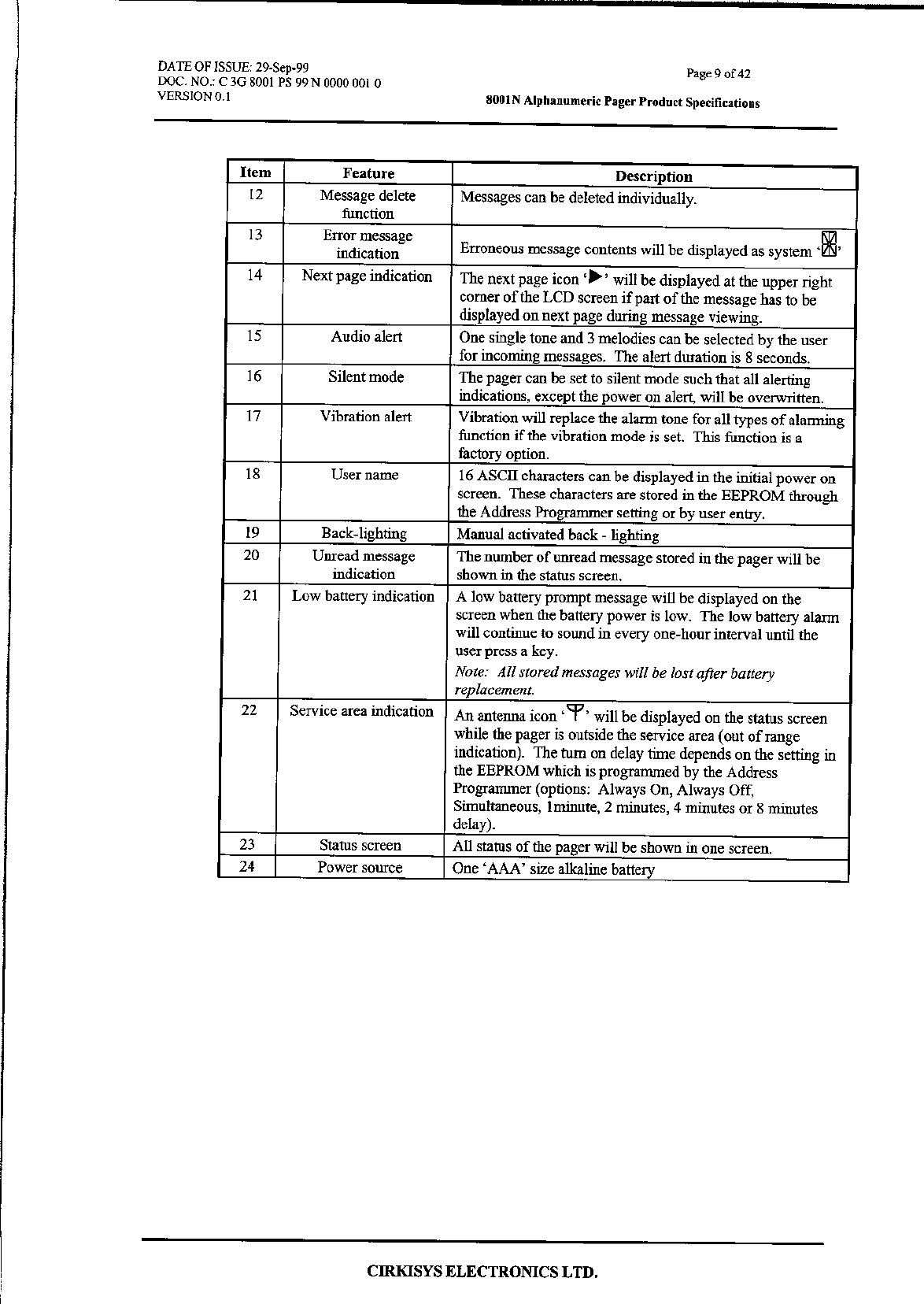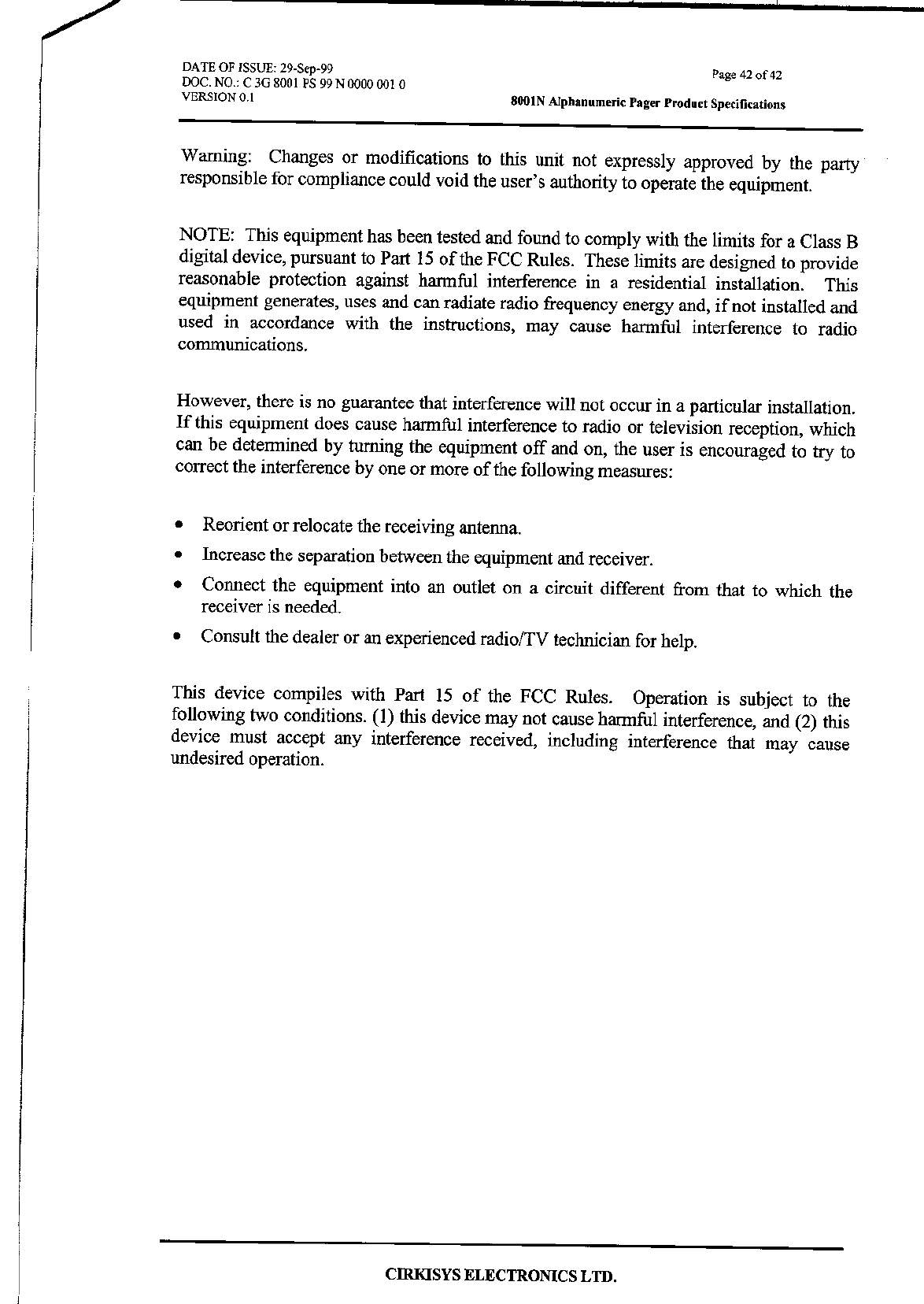 VTech Connect Limited Pager Compliance statement 15 19