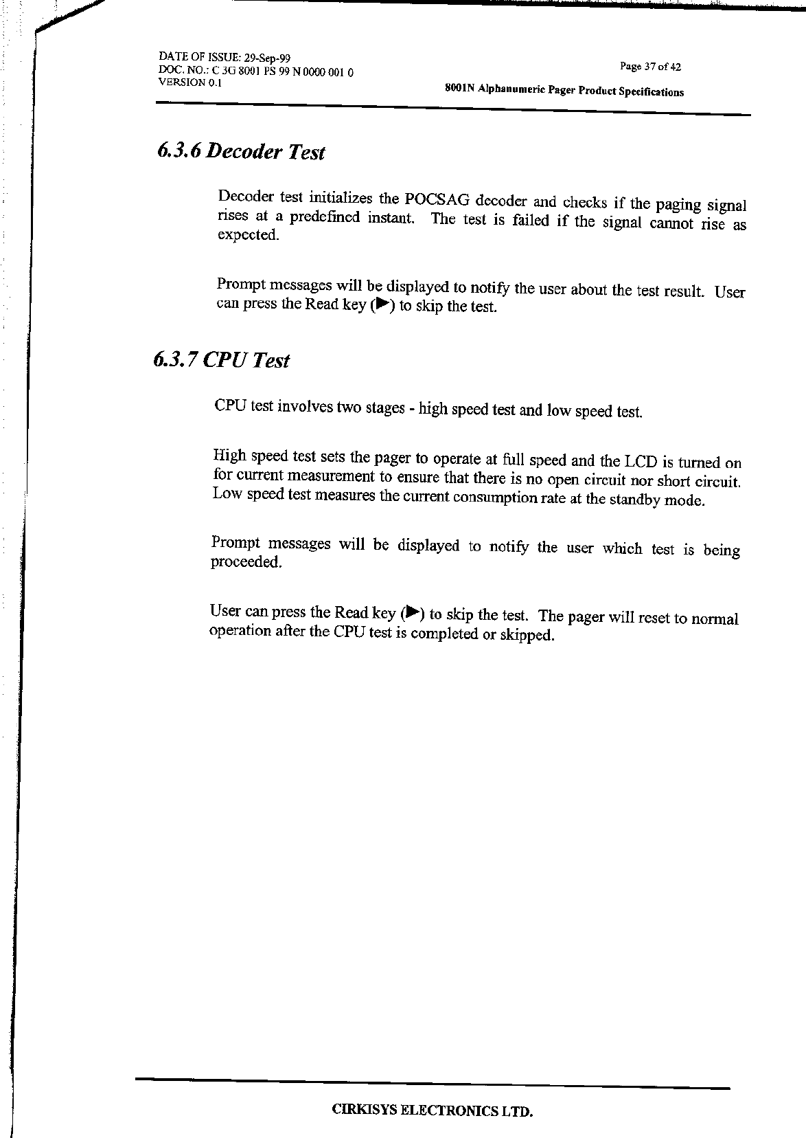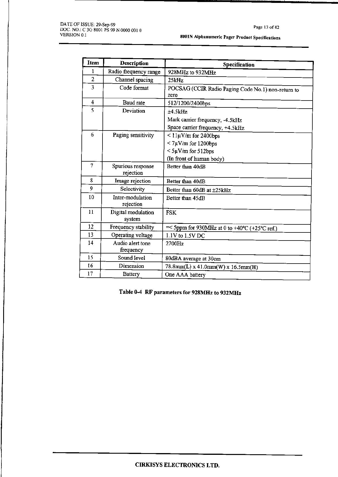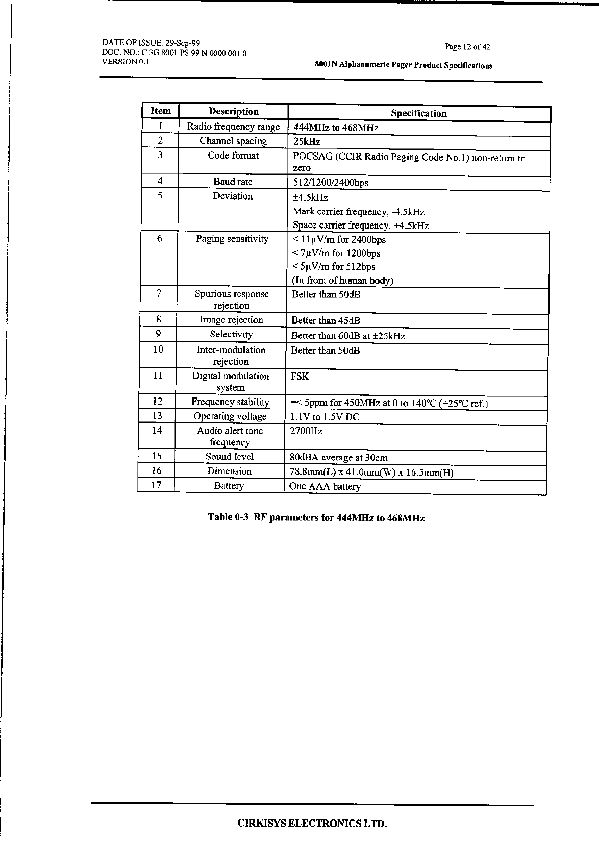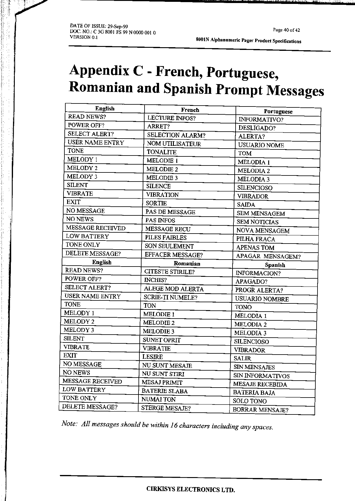 VTech Connect Limited Pager Compliance statement 15 19