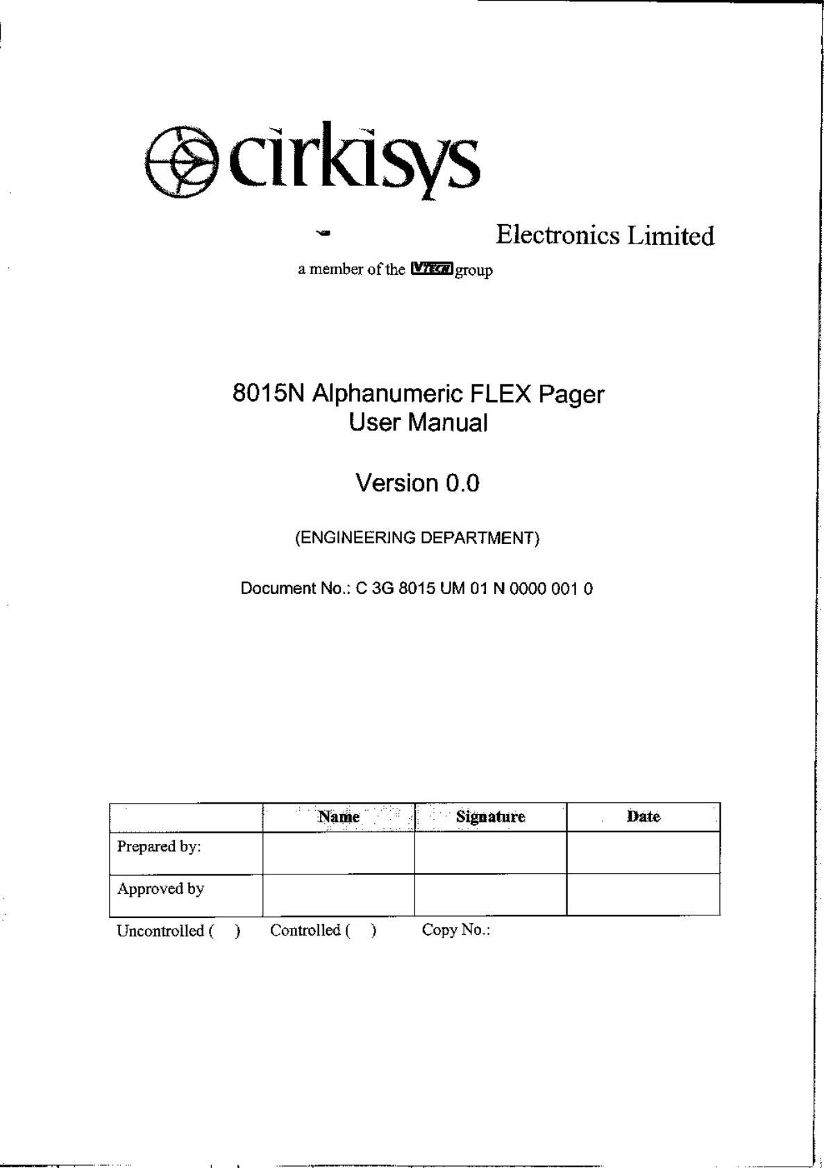 VTech Connect 8015-930 Alphanumeric Flex Pager User Manual 1