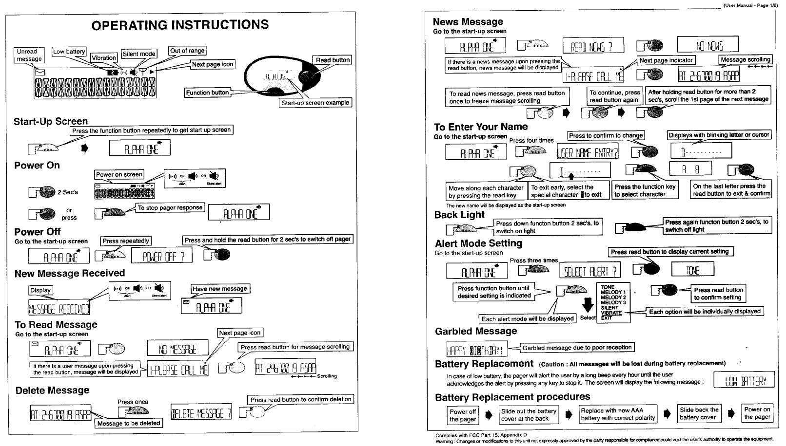 VTech Connect ALPHA-1-400-3 Alpha-numeric pager User Manual description