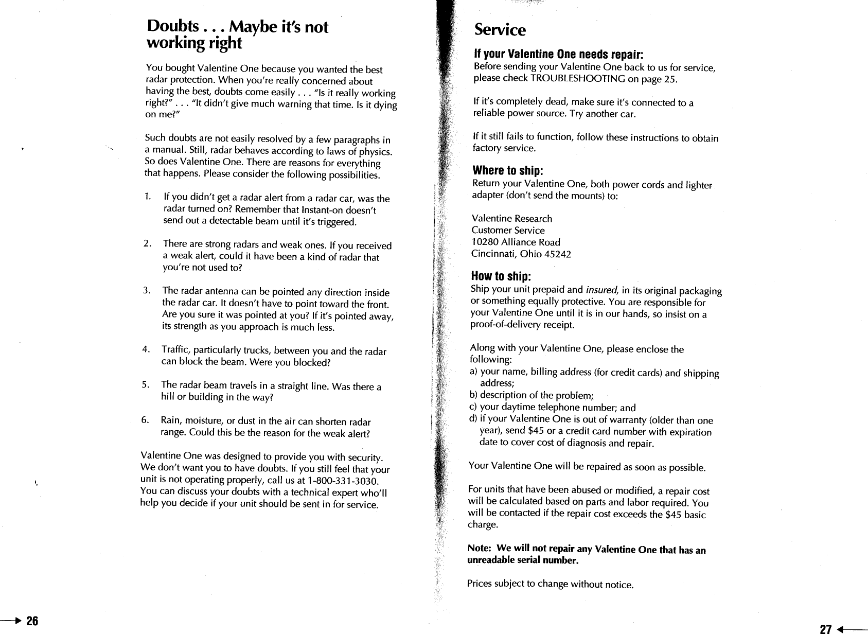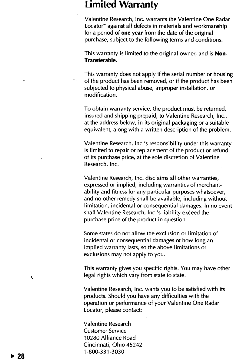 Valentine Research, Inc. Radar Locator users manual 3 of 3