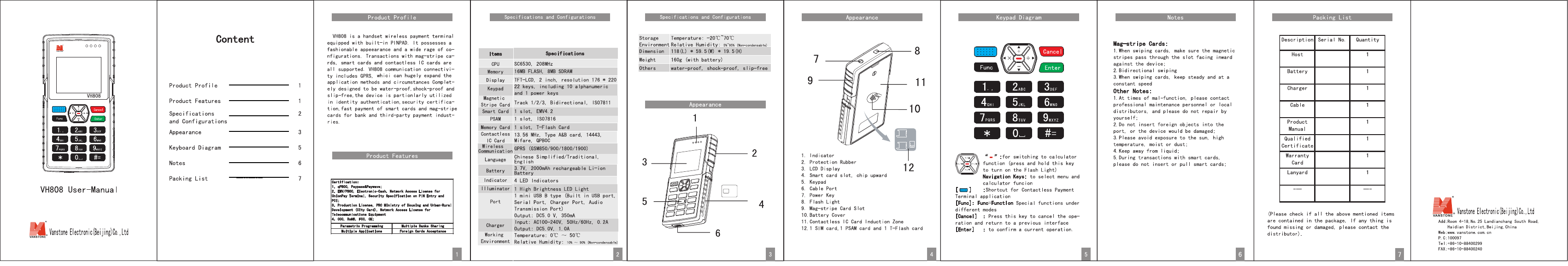 Vanstone Electronic VH808 Wireless Hand-held Payment Terminal User Manual VH808 VD12 VD10 3